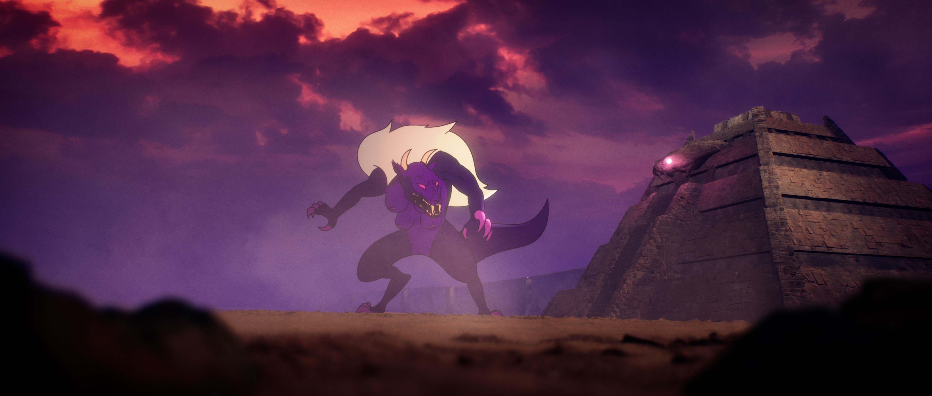 T.B : I was already familiar with the character and his zany universe. I thought it was really cool because we had a lot of freedom to write, and we could go all out with the action, the fantasy, not forgetting the humor. And then, for my first film as a director, I found animation really interesting, because it allows us to do a lot of things that live action doesn't, like a giant creature at the foot of a gigantic pyramid.
